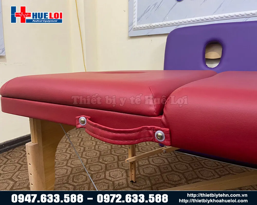 • Giường massage chân gỗ nâng đầu gấp gọn có3 màu cơ bản: đỏ - đen - tím