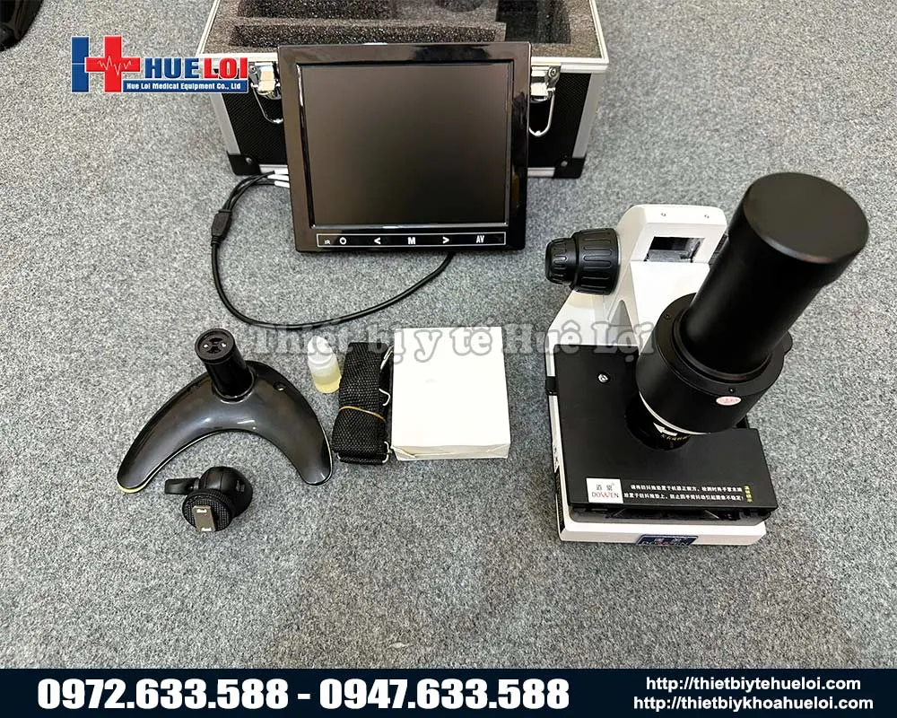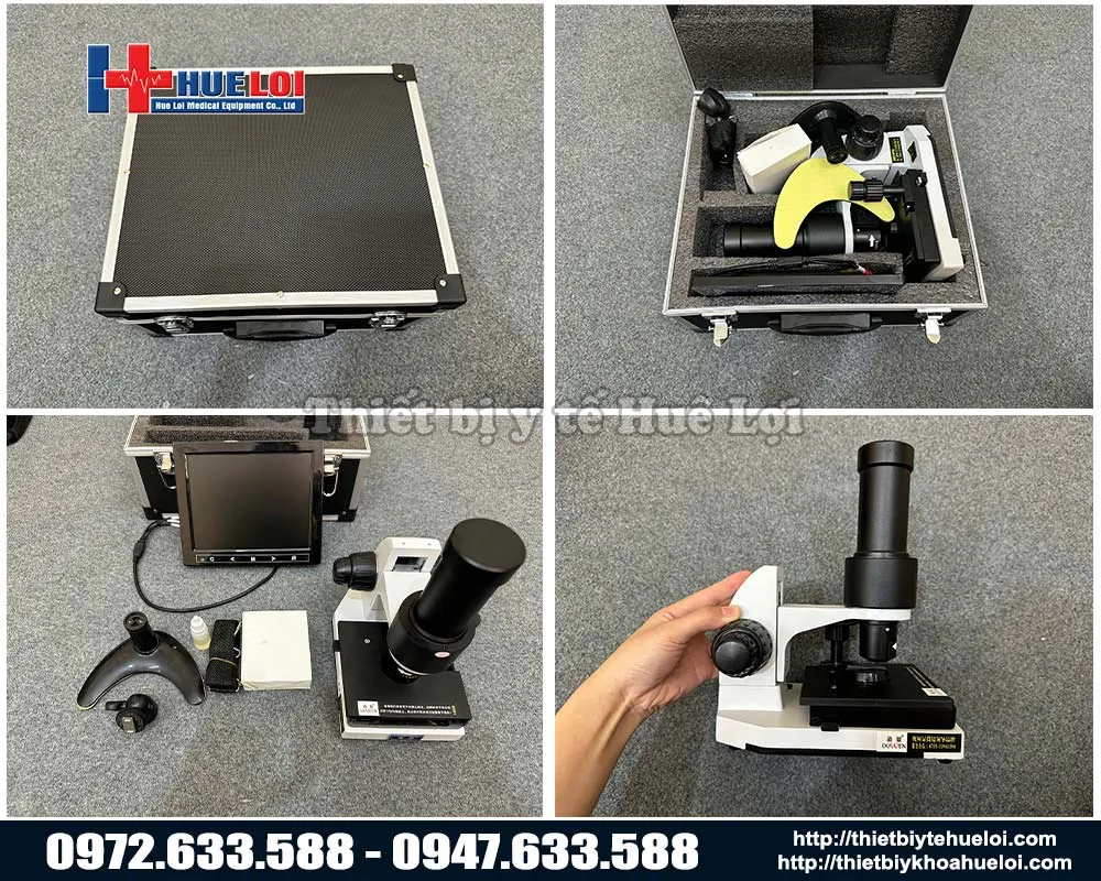 Bộ kính hiển vi soi mạch máu DN-880 do Huê Lợi cung cấp gồm máy chính, vali đựng, tranh treo khổ A0 và sách hướng dẫn sử dụng tiếng Việt. Giúp người dùng dễ dàng tham khảo và tra cứu thông tin.
