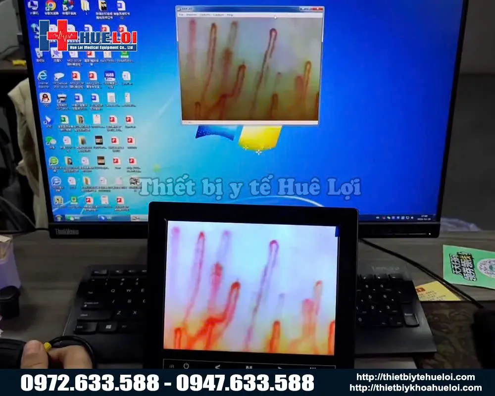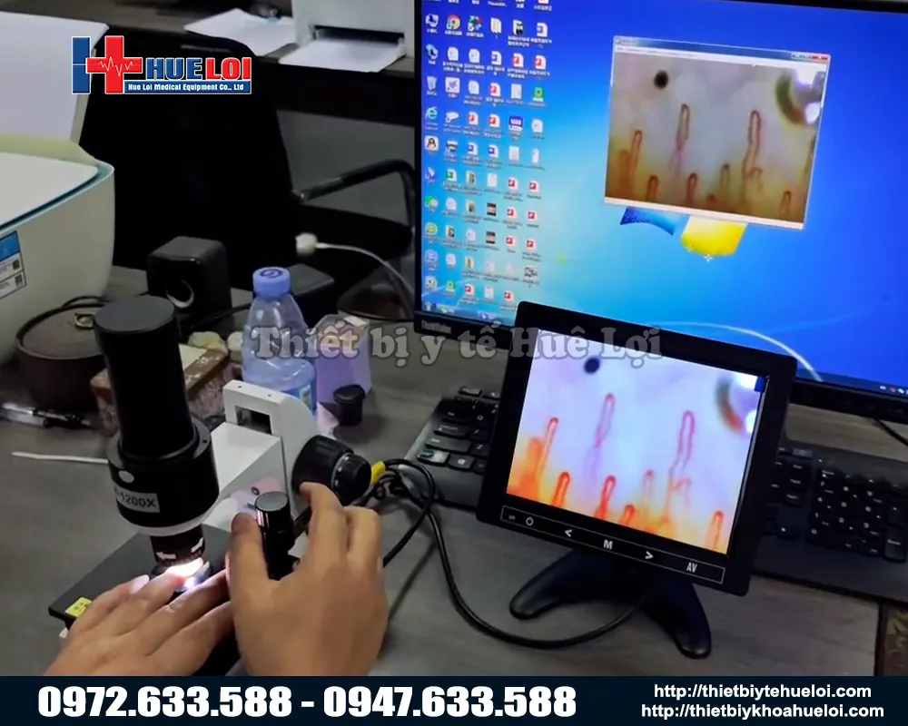 Kính hiển vi có khả năng phóng đại lên đến 1200X, giúp quan sát rõ các mạch máu nhỏ và tốc độ dòng chảy của máu.