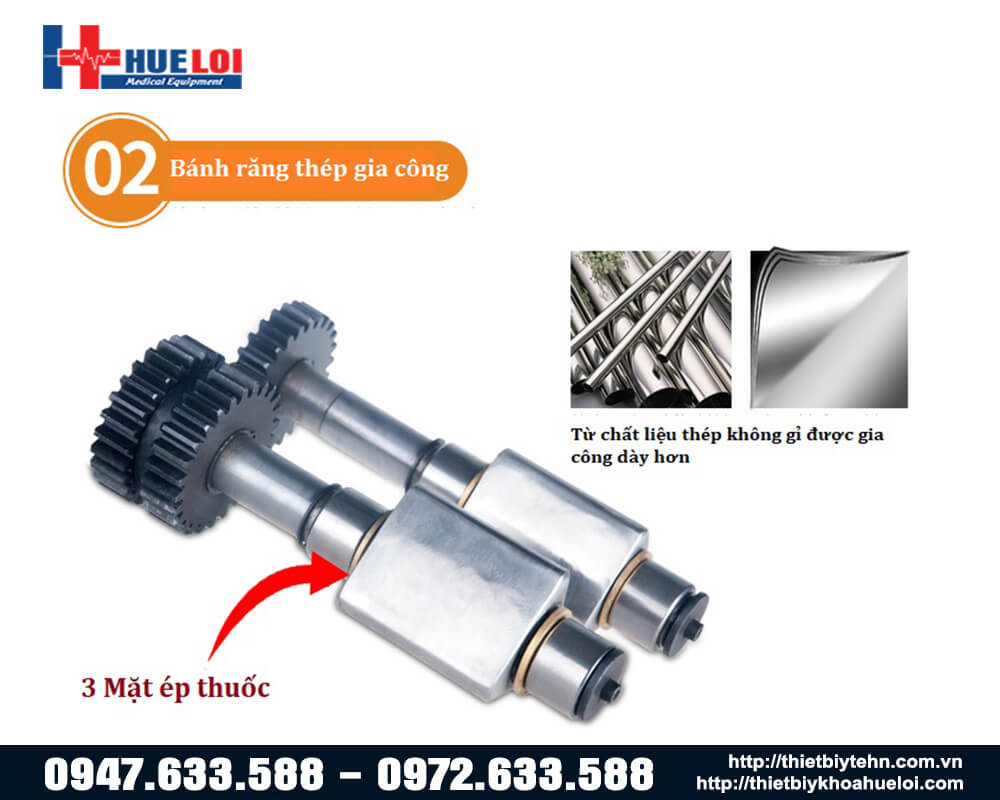 Máy làm viên thuốc đông y công suất lớn công suất lớn lên tới 4450W, sản lượng lên tới 70kg/giờ, đáp ứng được nhu cầu sản xuất số lượng thuốc viên hoàn nhanh và lớn tại các bệnh viện, các khoa hoặc phòng khám Y học cổ truyền.