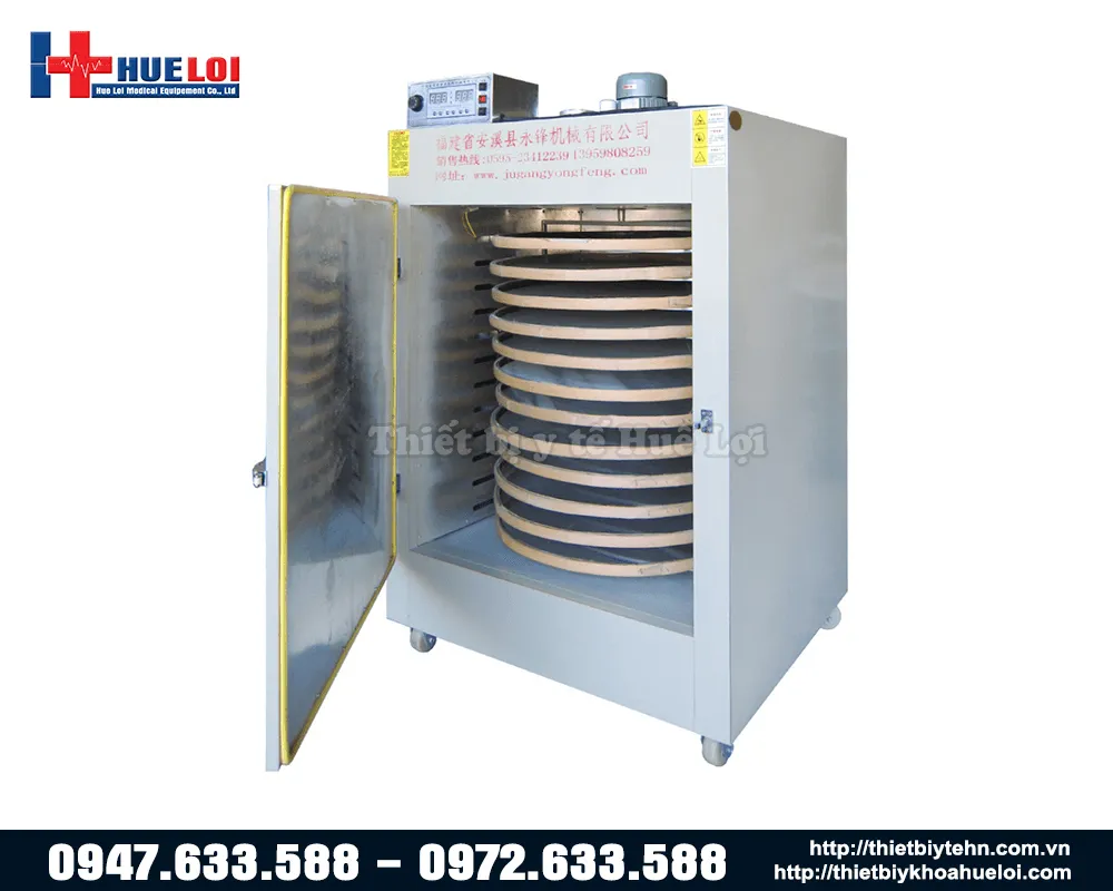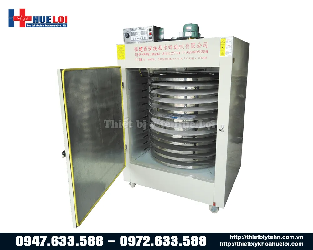 Tủ sấy thuốc đông y đa năng với thiết kế 12 tầng sấy ,với đường kính khay đựng dược liệu là 90cm, công suất 12kW - điện áp 380v, thiết kế thép 304 dày dặn cùng hệ thống khóa cao cấp giúp tránh hao hụt nhiệt, hệ thống điều nhiệt thông minh ở bên trong giúp cho nhiệt độ phân phối đồng đều đến nguyên liệu. Sản phẩm thích hợp sử dụng trong các khoa bào chế đông dược của các bệnh viện hoặc phòng khám Y học cổ truyền,sấy hoa quả ,các loại trà, hạt và nông thủy sản.