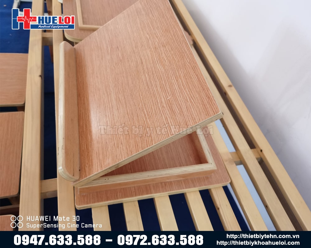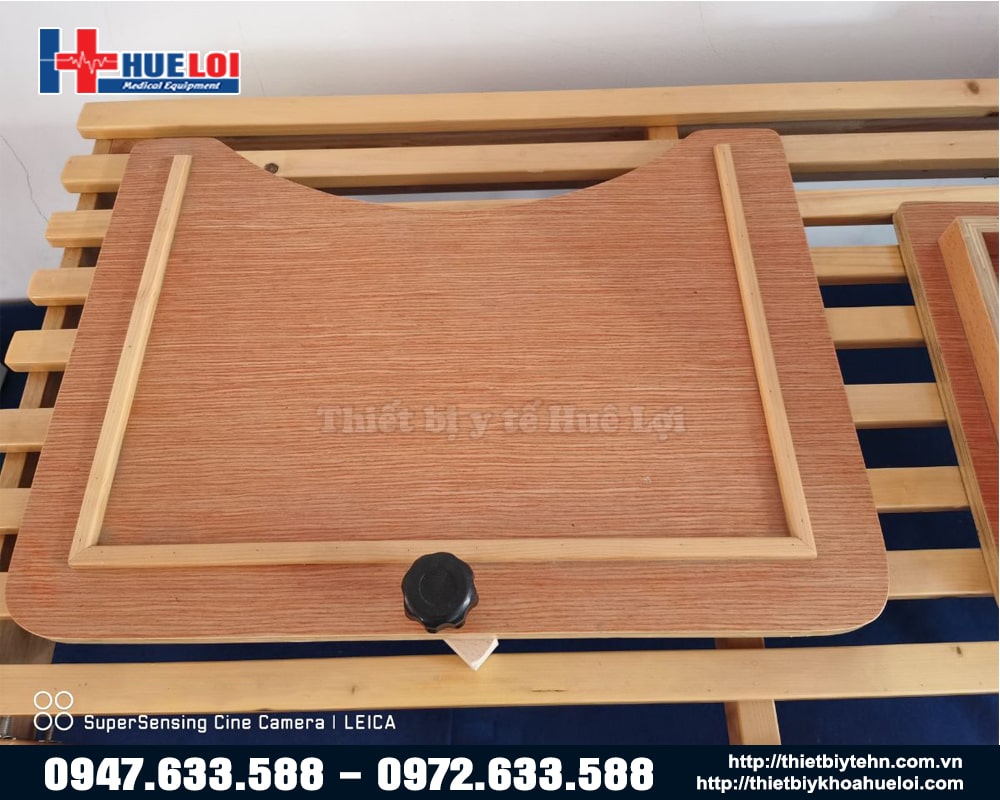 • Giường gỗ: Có thể tùy chỉnh chiều cao của giường cho phù hợp với nhu cầu bằng cách điều chỉnh vị trí các bu lông màu đen ở chân giường.
