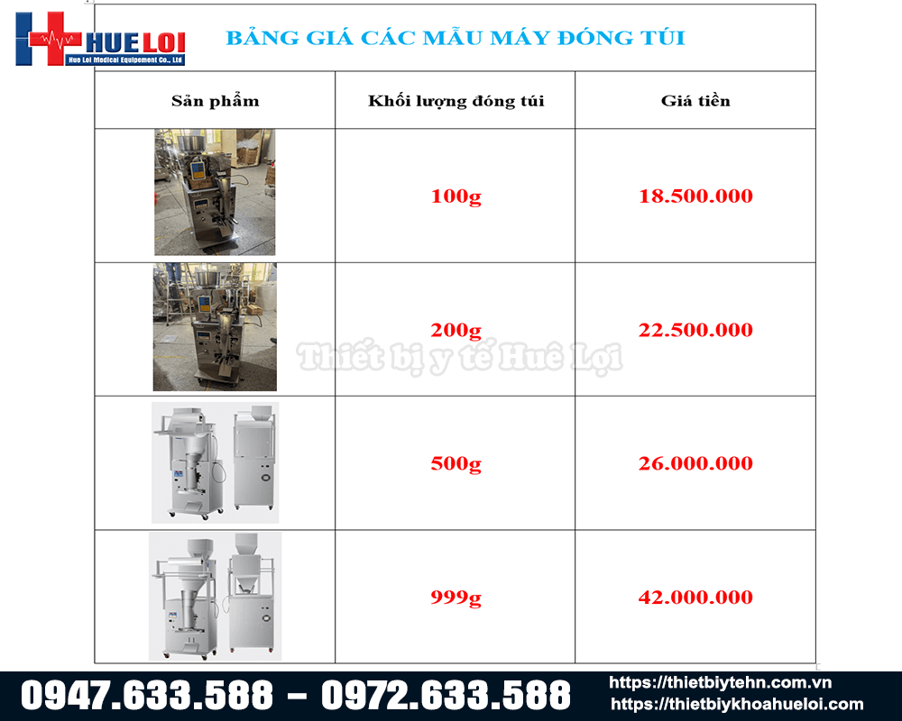 Có nhiều mẫu mã máy với khối lượng đóng túi khác nhau từ 1-999g tùy theo nhu cầu của khách hàng.