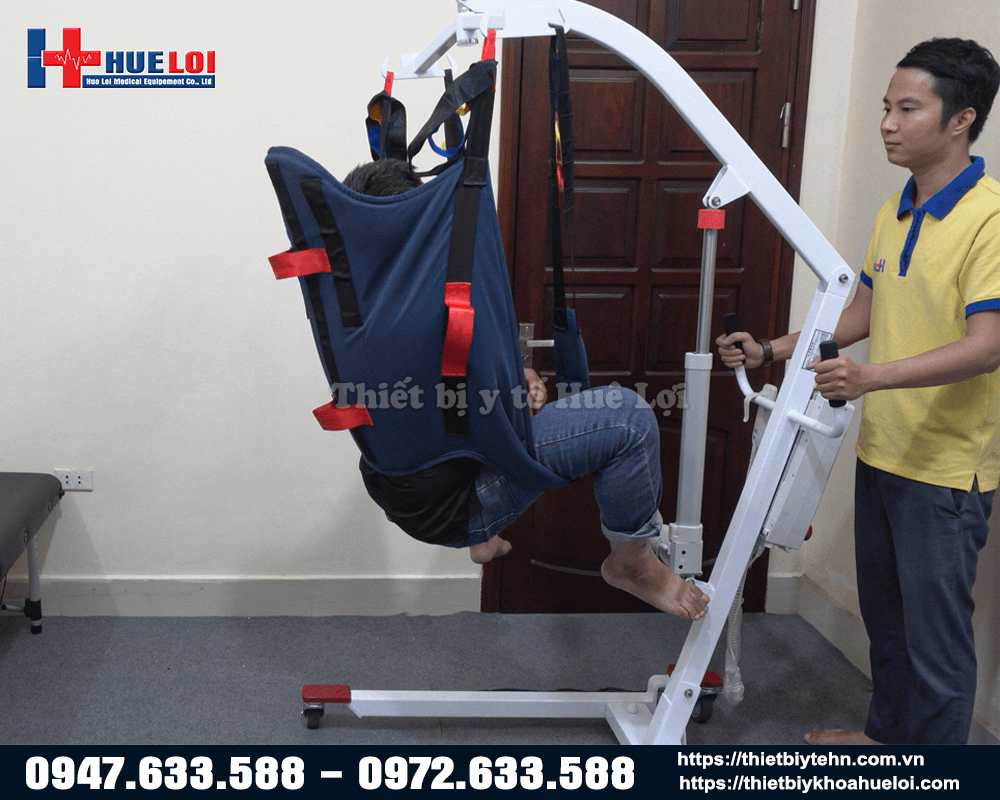 Thiết bị nâng hạ bệnh nhân sử dụng hệ thống pít-tông điện và hệ thống địu chắc chắn giúp nâng hạ bệnh nhân từ giường sang xe lăn, đi vệ sinh, đi tắm, lên ô tô... một cách dễ dàng và an toàn. Máy giúp bệnh nhân thoải mái hơn rất nhiều trong cuộc sống sinh hoạt thường ngày và giúp người chăm sóc giảm tối đa sức lực, thời gian.