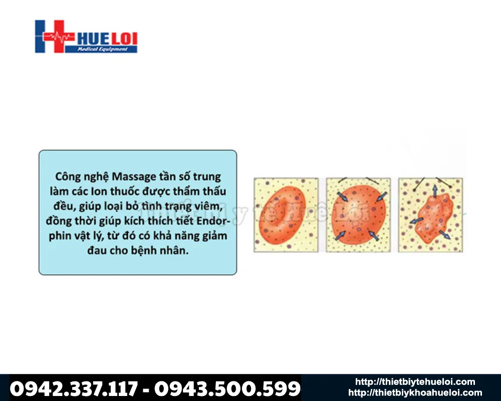 Điểm ưu việt nhất của thiết bị này nằm ở khả năng cộng hưởng 3 tác động vật lý đồng thời: Nhiệt trị liệu, Từ trường và Massage rung. Sự kết hợp này không chỉ giảm triệu chứng tại chỗ mà quan trọng hơn là "mở đường" giúp cho các thuốc điều trị thấm sâu vào vùng tổn thương, nâng cao hiệu quả điều trị hơn rất nhiều so với điều trị nội khoa đơn thuần.