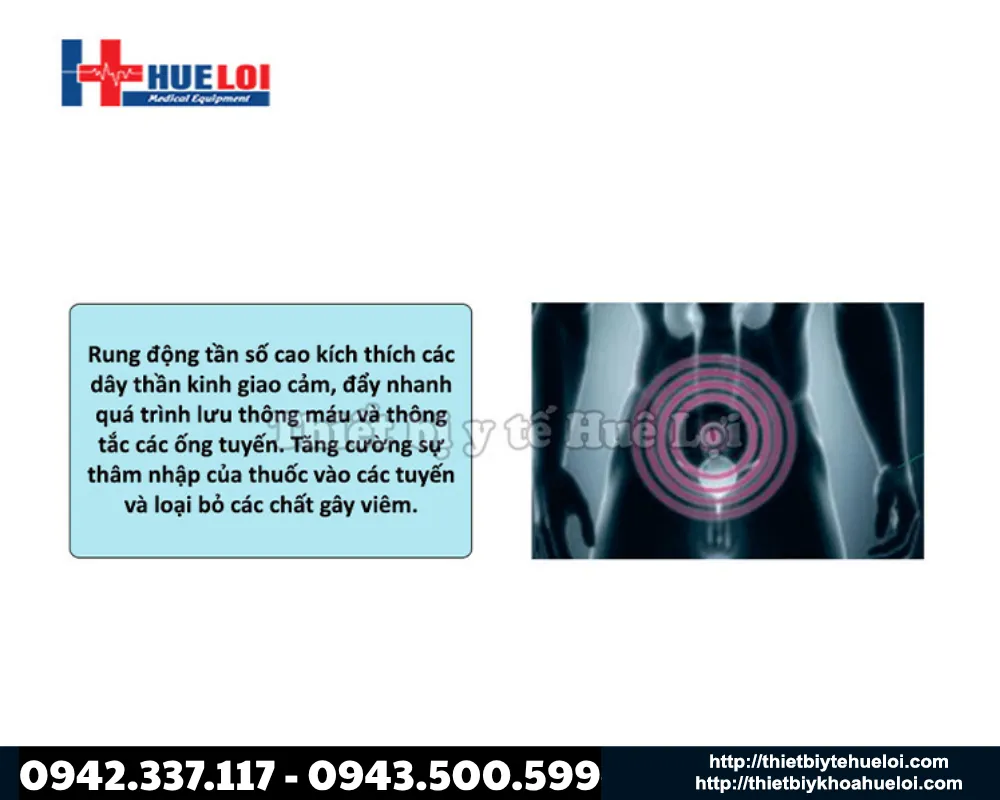 3. Massage rung tần số cao - Giải phóng ứ đọng Viêm mãn tính thường đi kèm với tắc nghẽn dịch. Chế độ rung của máy giúp dẫn lưu dịch viêm ra ngoài, giảm sung huyết và giải tỏa áp lực cho bệnh nhân ngay sau khi điều trị